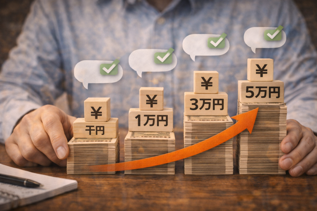 最初は月に数千円〜1万円くらいが現実的なスタートライン。